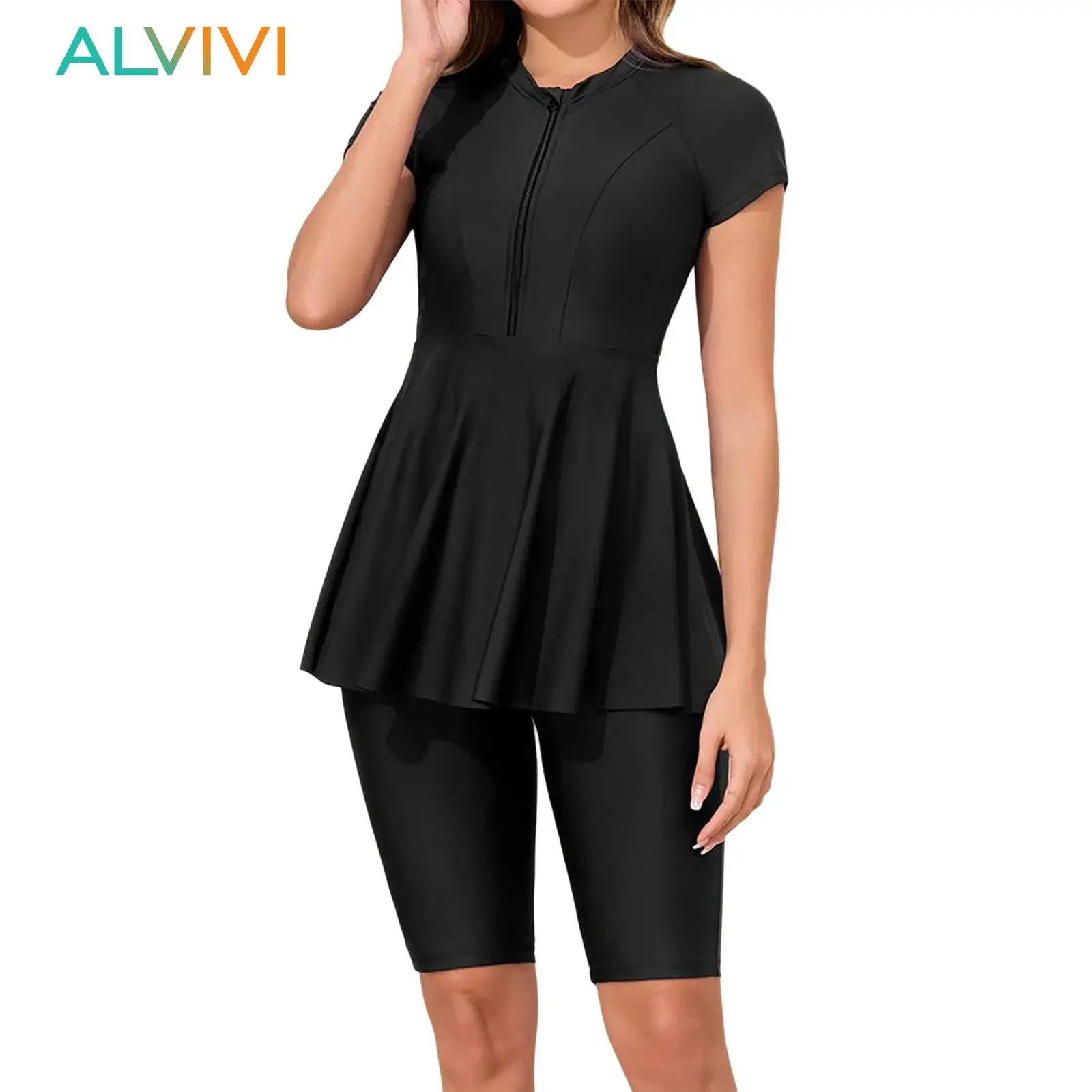 Dwuczęściowy strój kąpielowy dla dziewczynek, dziecięcy, nowy wzór 2026, krótkie rękawy, zamek błyskawiczny, strój kąpielowy dla dzieci, letnia sukienka, szorty, kostiumy kąpielowe, pływanie.