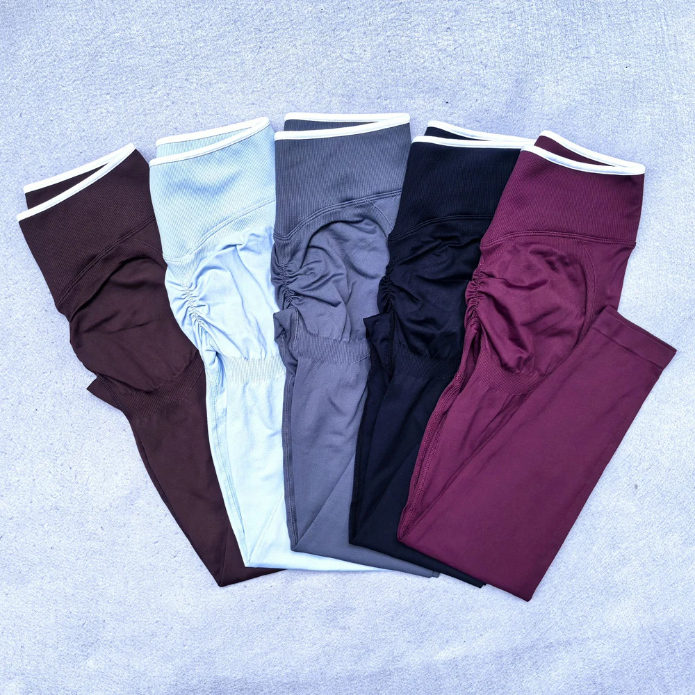 Legginsy sportowe damskie bez logo, bezszwowe, długie spodnie do jogi, z niskim, prążkowanym pasem, odzież sportowa do fitnessu, legginsy do ćwiczeń na siłowni.