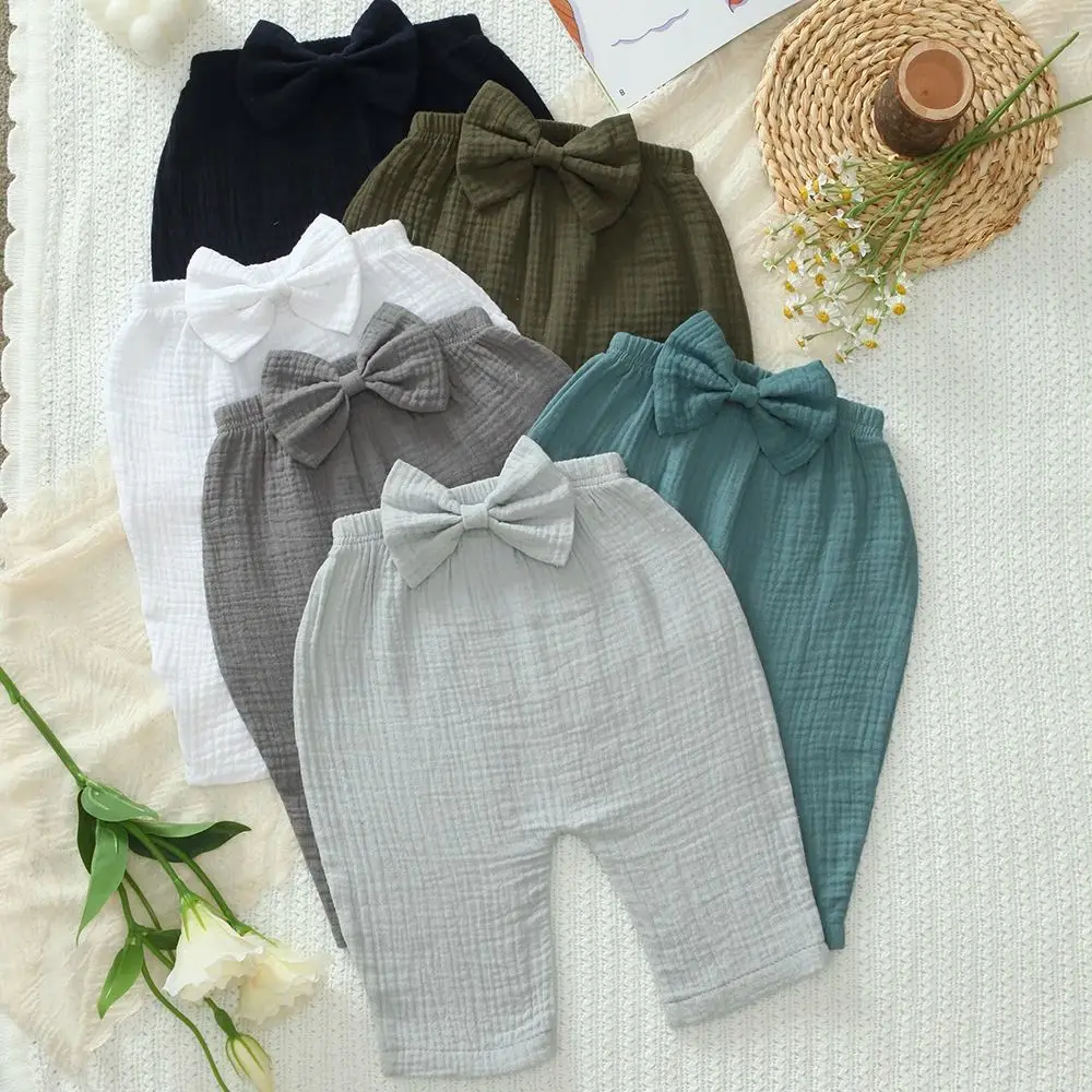 Dziecięce spodnie z organicznej bawełny dla niemowląt i małych dzieci, chłopięce spodnie, codzienne spodnie typu haremki, wiosenne i letnie, urocze, miękkie spodnie z muślinu, spodnie capri