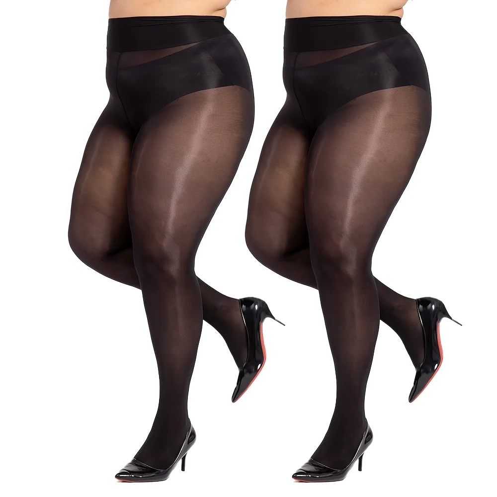 2 Pary Damskich Rajstop Plus Size z Połyskiem 20D, Przezroczyste Błyszczące Rajstopy z Wysokim Stanem, Olejkowo Błyszczące Pończochy w Rozmiarze Queen Size