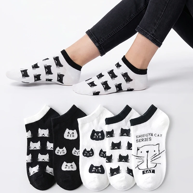 Zabawne skarpetki z nadrukiem kota, miękkie, oddychające, bawełniane skarpetki do połowy łydki z motywem kota, śmieszne skarpetki do spania, na podłogę, do domu, prezent dla miłośników kotów.