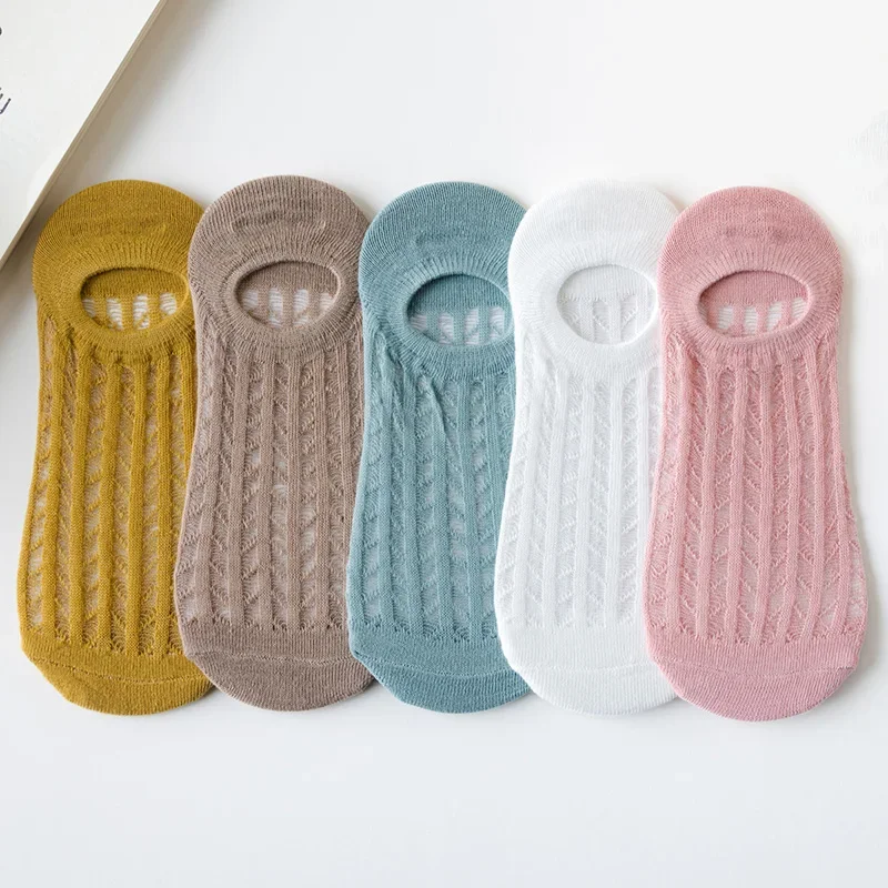 5 Par Damskich Letnich Cienkich Niewidocznych Skarpetek Silikonowych Antypoślizgowych Siateczkowych Oddychających Skarpetek typu Stopki Niskie Bezszwowe Damskie Skarpetki do Kapci