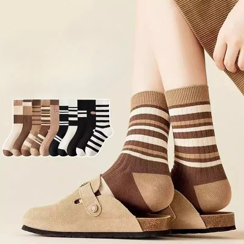 10 par damskich skarpetek na jesień i zimę, modne, uniwersalne, średniej długości, ocieplane, retro, codzienne, wygodne, w paski, długie skarpetki do połowy łydki.