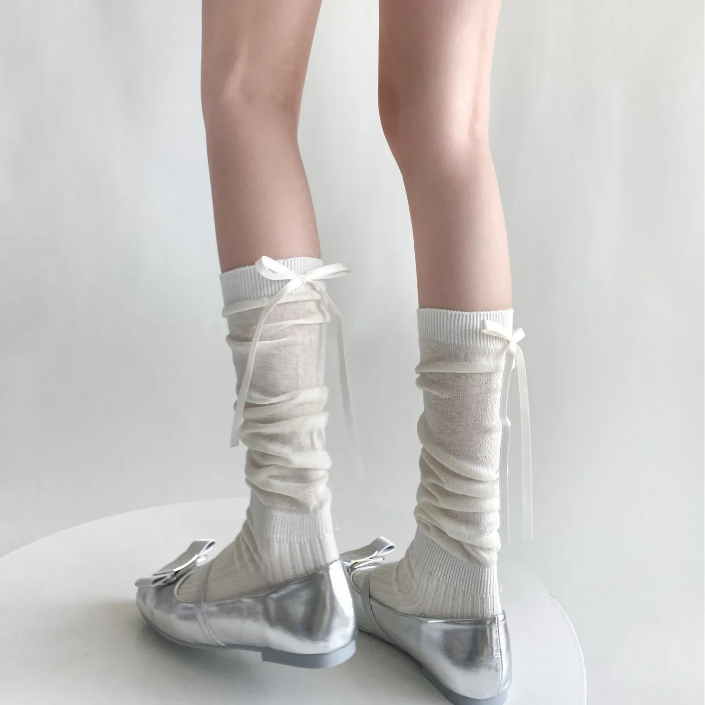 Skarpetki damskie bawełniane, lekko prześwitujące, ażurowe, w stylu słodkim, modne, wiosenno-letnie, z kokardą, baletowe, wysokie, w stylu Lolita, luźne, do zakładania warstwowo.