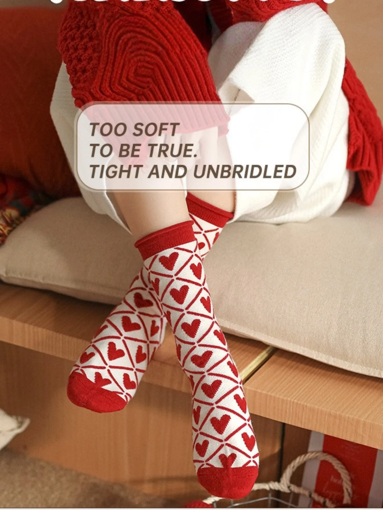 1/2 para damskich świątecznych skarpetek w czerwone serce, skarpetki do połowy łydki, skarpetki noworoczne, skarpetki na szczęście, skarpetki walentynkowe, noszone za kostkę, odpowiednie na każdą okazję i każdą porę roku