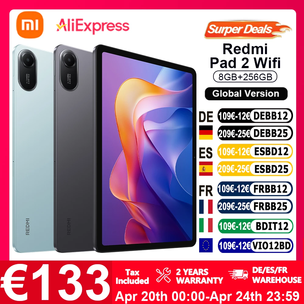 Globalna wersja Xiaomi Redmi Pad 2 WIFI 11 cali, bateria 9000mAh, 90Hz, zaawansowany Helio G100-Ultra, możliwość rozszerzenia pamięci do 2TB, Xiaomi HyperOS