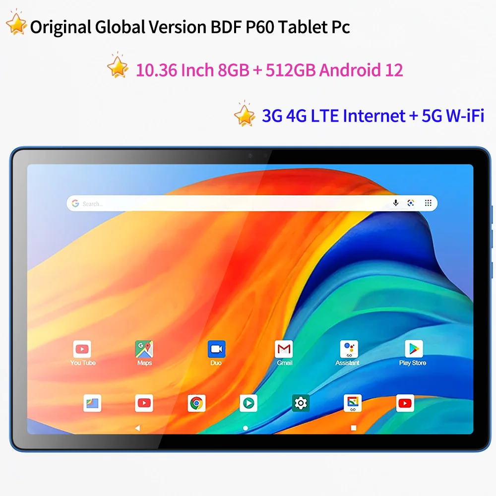 Nowe tablety Google 5G z 2025 roku, 10.1 cala, ekran 2K HD, ośmiordzeniowy procesor, 8GB RAM, 512GB ROM, obsługa dwóch kart SIM, WiFi, tablet PC z systemem Android, bateria 8000mAh