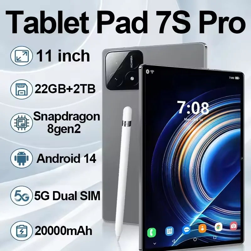 Nowy Oryginalny Tablet Pad 7S Pro Wersja Globalna Android 14 Snapdragon8Gen2 22GB+2TB GPS 5G WiFi Dual SIM 4K HD Tablettle PC
