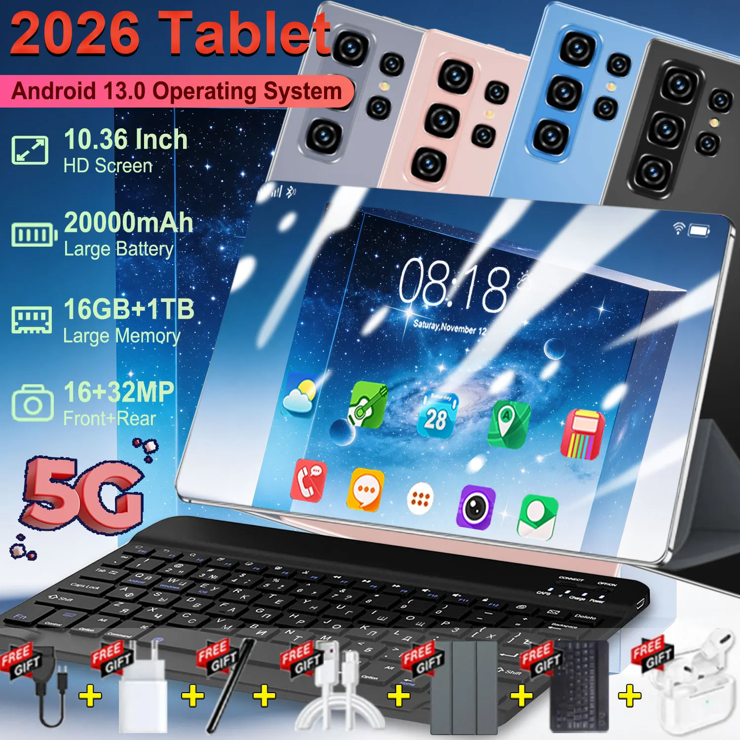 Tablet 2025 5G z dużym ekranem HD 10,36 cala, Android 13.0, 16 GB RAM, 1 TB ROM, 20000 mAh, 14-rdzeniowy, 16 MP, 32 MP, Dual SIM, GPS, do biura.