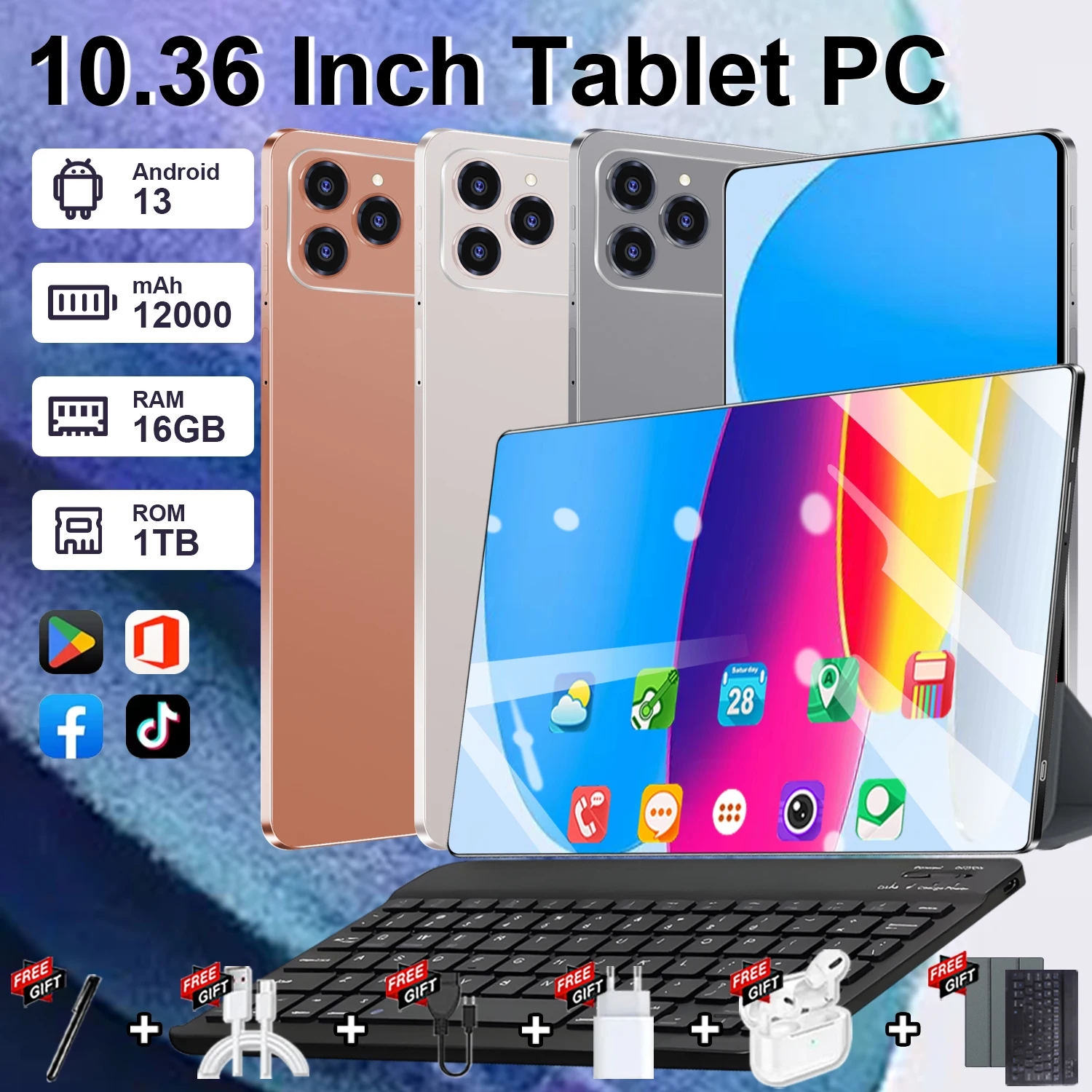 Tablet Android 5G 13 cali 10.36 cala Google Play 10-rdzeniowy Podwójne Kamery Dual SIM Tablet PC Bluetooth 16GB + 1TB ROM