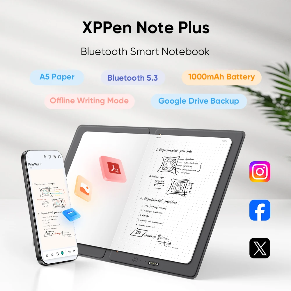 XPPen Note Plus Nowy Bluetooth Smart Notebook A5 Cyfrowy Notatnik do Pisania Ręcznego z Baterią 1000mAh i Kopiowaniem na Google Drive dla Androida i iOS