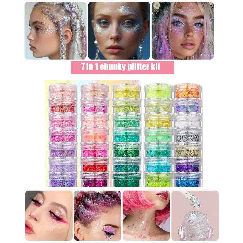 Błyszczące cekiny, brokatowy żel do ciała, paleta cieni do powiek, makijaż sceniczny do twarzy i ciała - długotrwały do twarzy, oczu, włosów do DIY, na imprezy artystyczne.