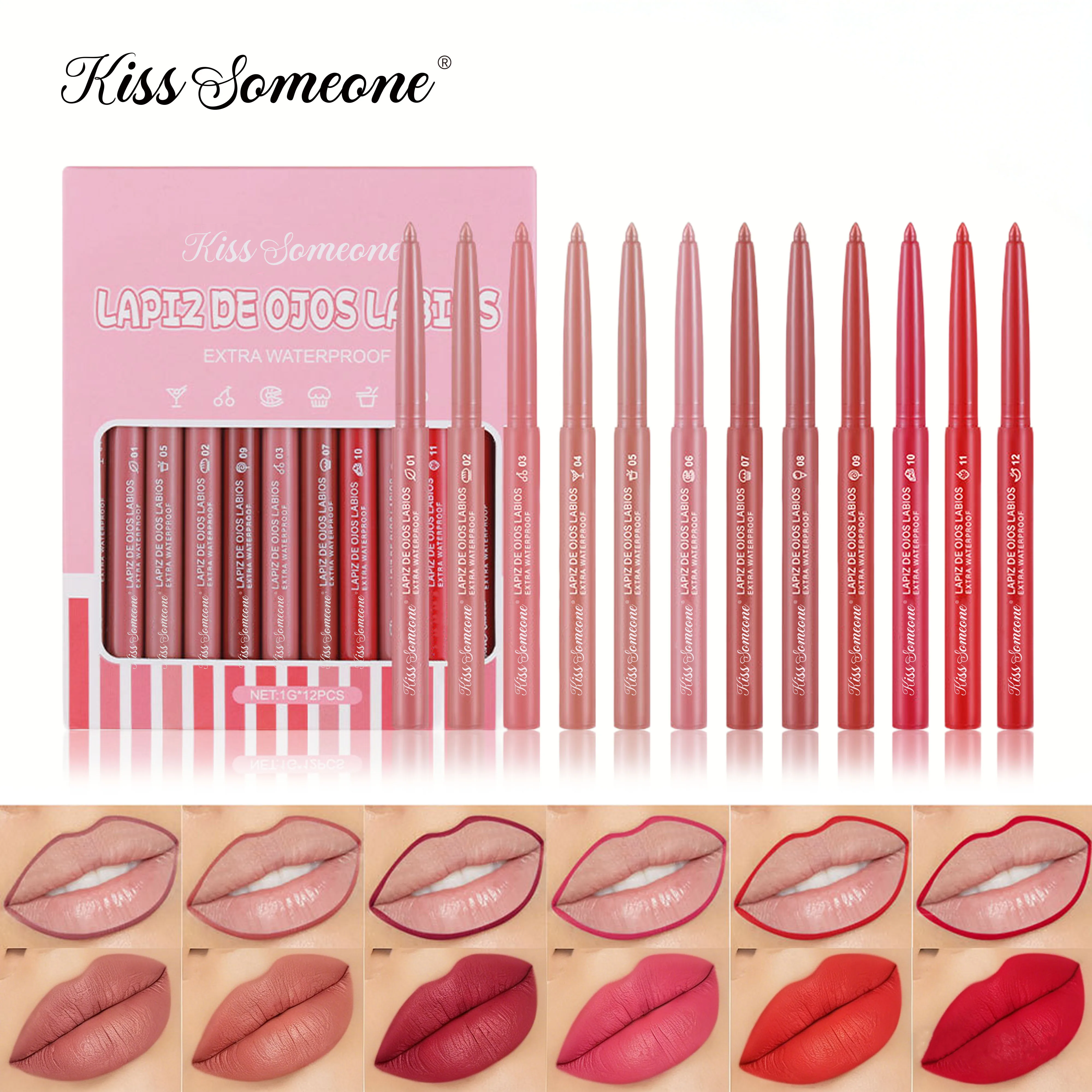 Zestaw 12 kredek do ust, długotrwałe, odporne na rozmazywanie, w odcieniach nude, gładki matowy wykończenie, 12 różnych odcieni, zestaw do makijażu ust na prezent.