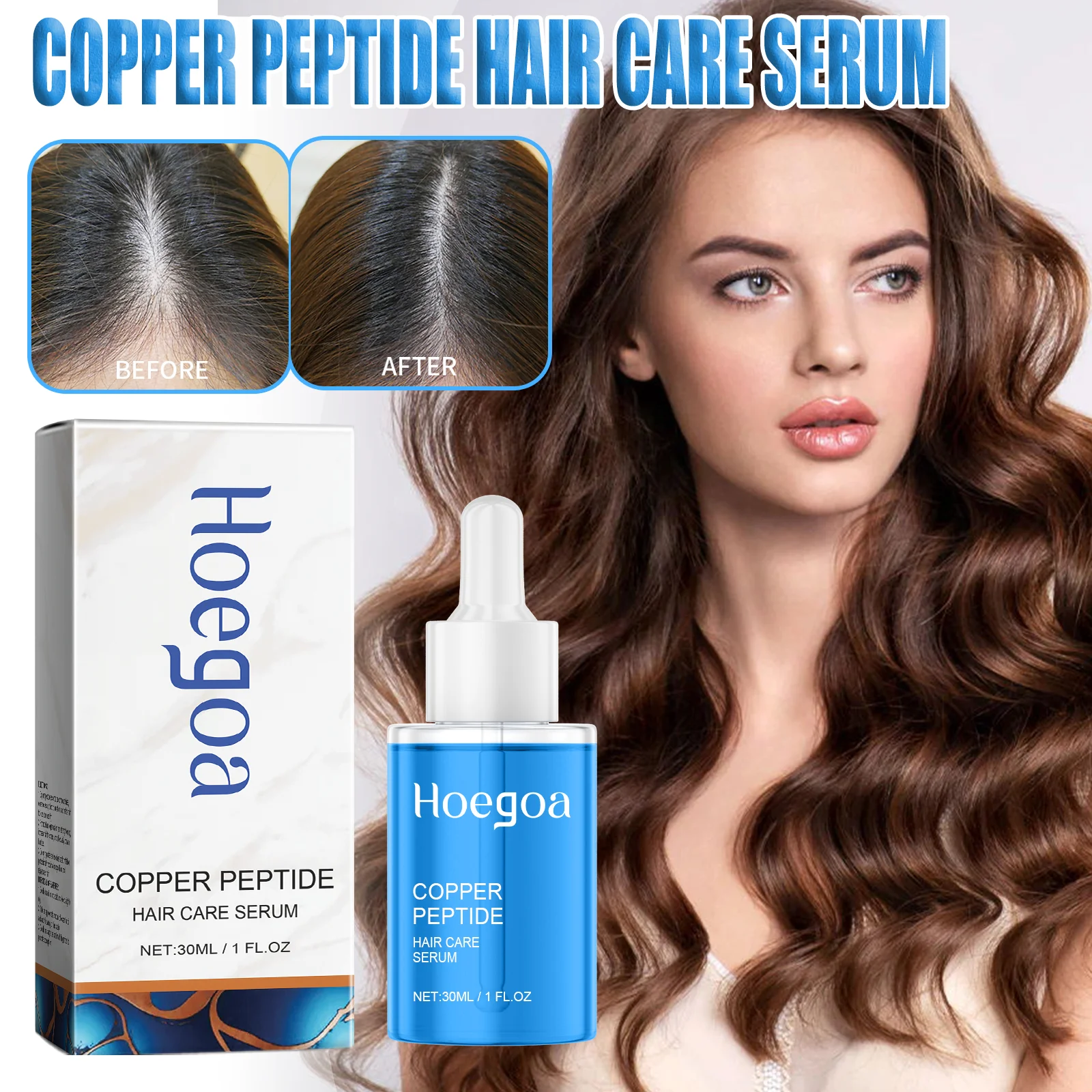 Miedziany Peptydowy Serum do Włosów 30ml Kuracja na Skórę Głowy Esencja na Porost Włosów Przeciw Wypadaniu Włosów Wzmacniająca Folikulki Włosowe dla Kobiet i Mężczyzn