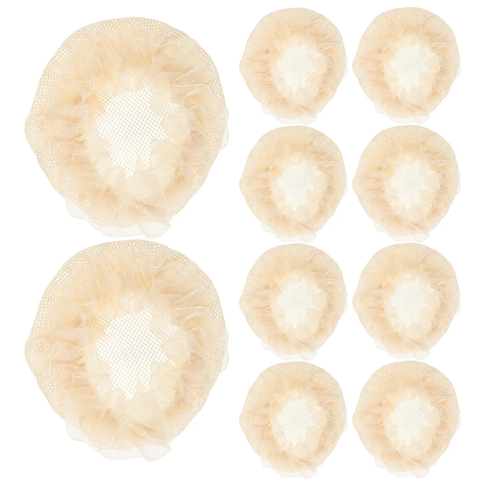 10 szt. Beżowe elastyczne siatki do włosów do baletu, z koronkowym wykończeniem, do tworzenia koków, siateczkowe osłonki na włosy dla dziewcząt i kobiet, do baletu.