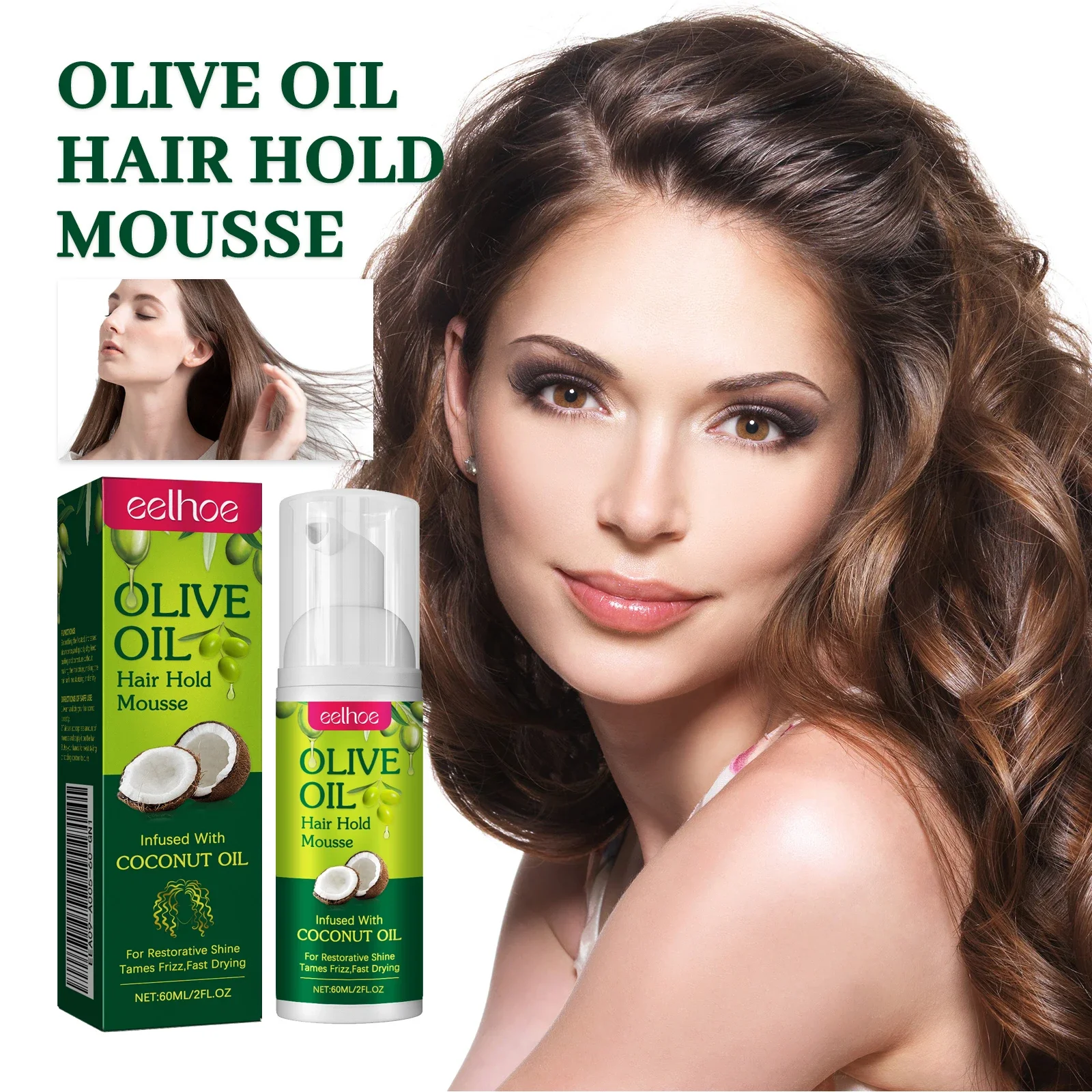 Pianka do włosów z olejem z oliwek - Pianka definiująca loki, kontrolująca puszenie się włosów, zapewniająca długotrwałe loki i nawilżająca pianka do stylizacji.