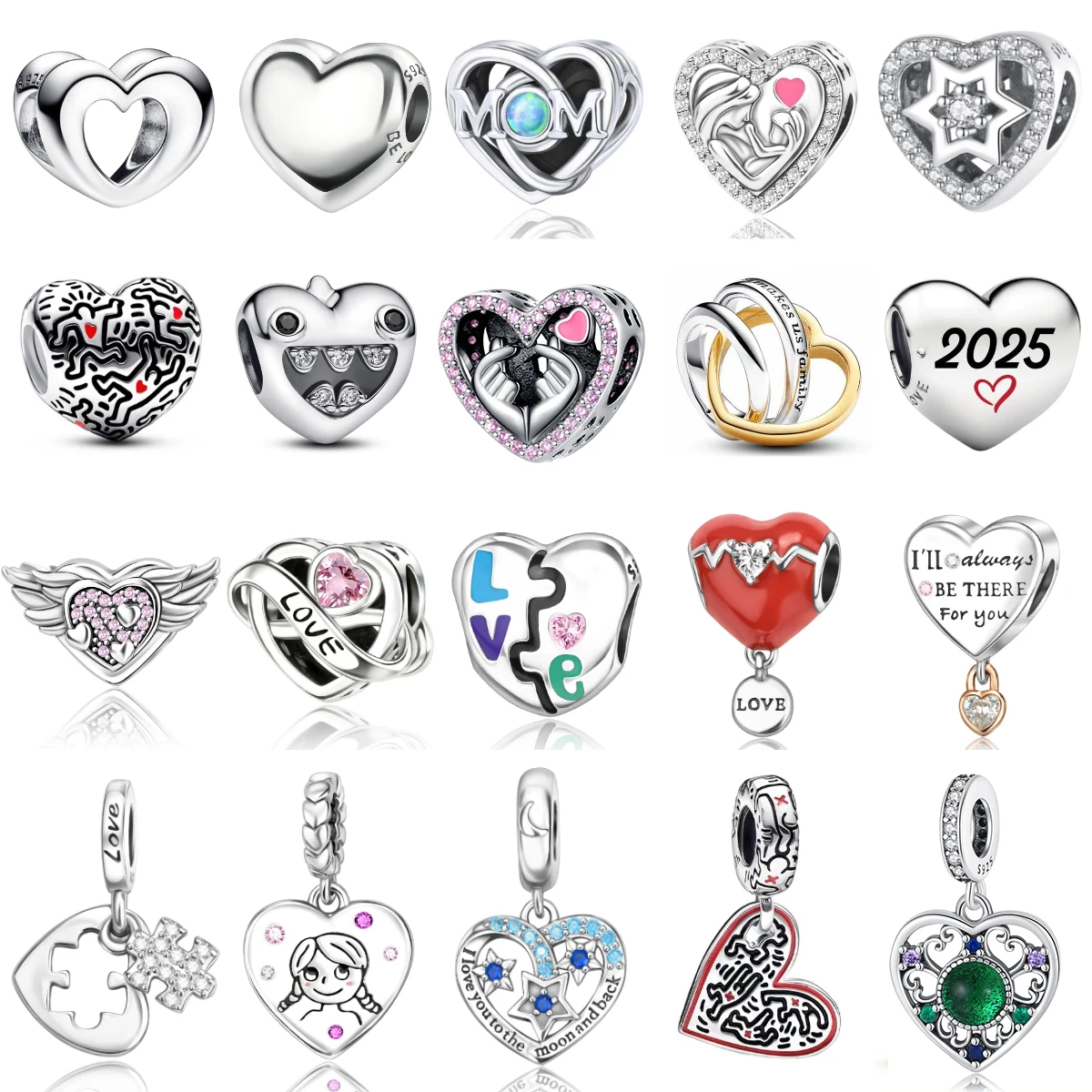 Srebrne charmsy próby 925 w kształcie romantycznych serc, kluczy, notatników, żółwi, grzybów, skrzydeł, pasujące do bransoletek, naszyjników, biżuteria, prezent dla kobiet.