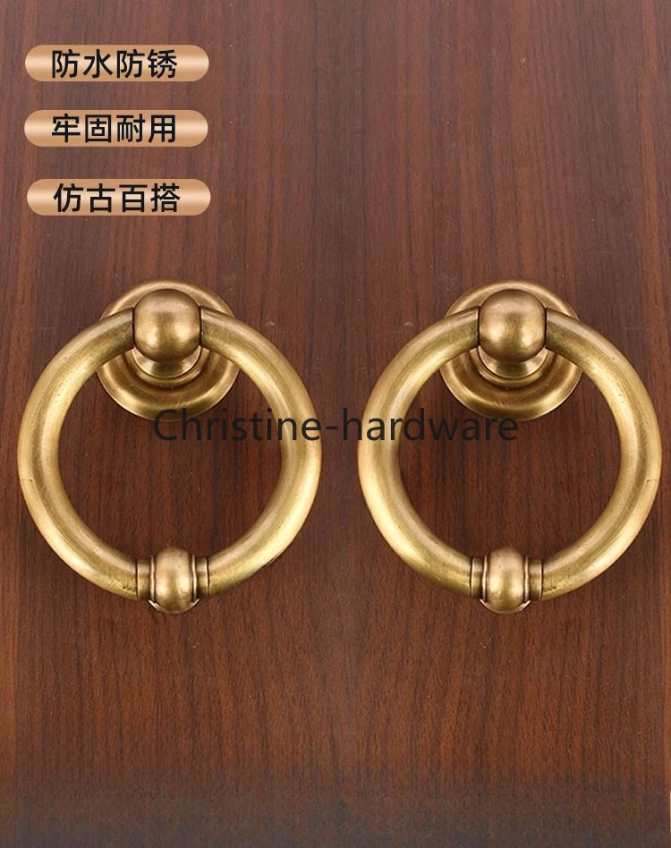 Duży, antyczny, mosiężny uchwyt do drzwi wejściowych, nowoczesny uchwyt do drzwi szklanych i drewnianych, klamka do bramy, pierścień do uchwytu drzwi wejściowych.