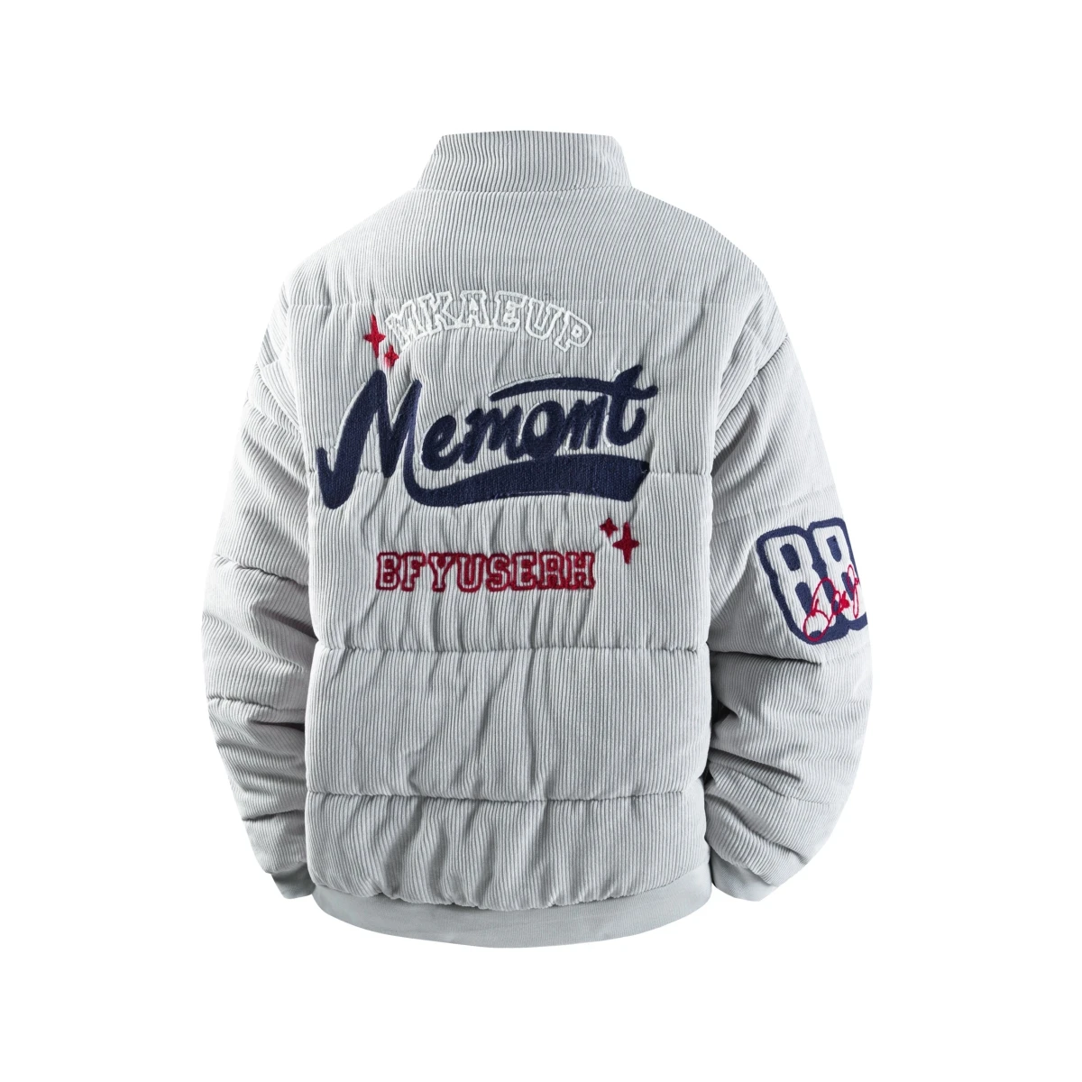 Ciepła bawełniana kurtka z amerykańskiego sztruksu, haftowana, z podszewką z polaru, luźna odzież wierzchnia zimowa dla mężczyzn i kobiet, modna marka młodzieżowa.