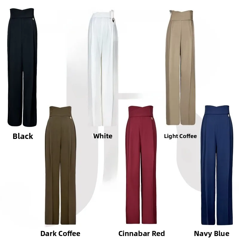 Spodnie do tańca nowoczesnego z wysokim stanem i prostymi nogawkami, damskie spodnie z niewidocznym zamkiem błyskawicznym, wydłużające nogi, do fitnessu i jogi.