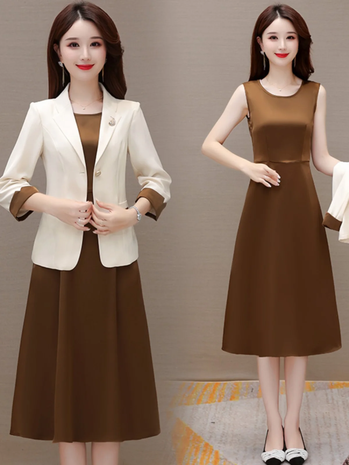 2023 nowy jesienny odzież do pracy damski garnitur elegancki jednolita marynarka + sukienka bez rękawów 2-częściowy zestaw kurtka jednorzędowa Plus rozmiar S-5XL