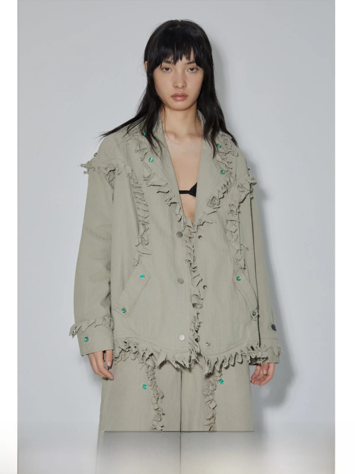 APRIORI Oversize'owy, swobodny garnitur z efektem postarzenia, luźny krój, stylizacja w stylu terenu opuszczonych terenów, top damski, odzież wierzchnia