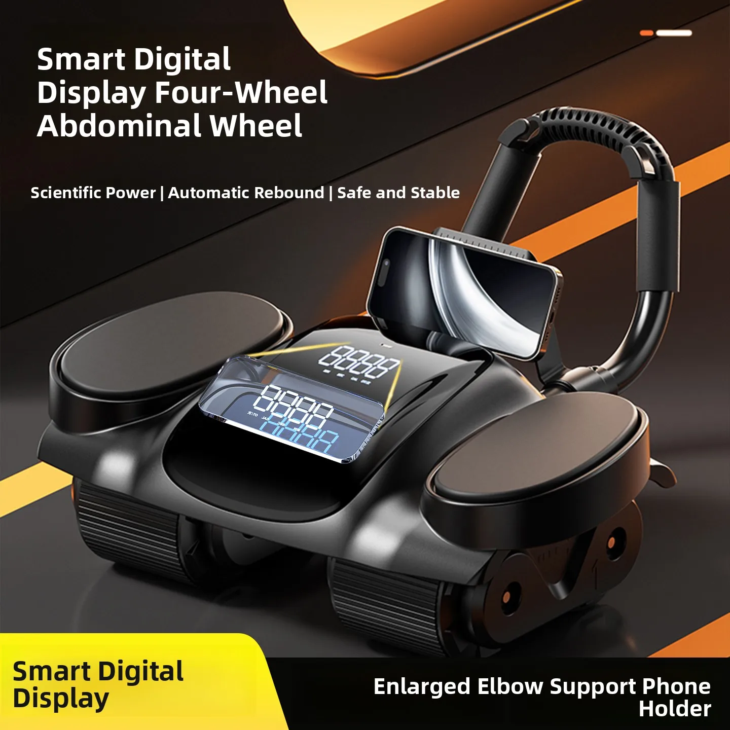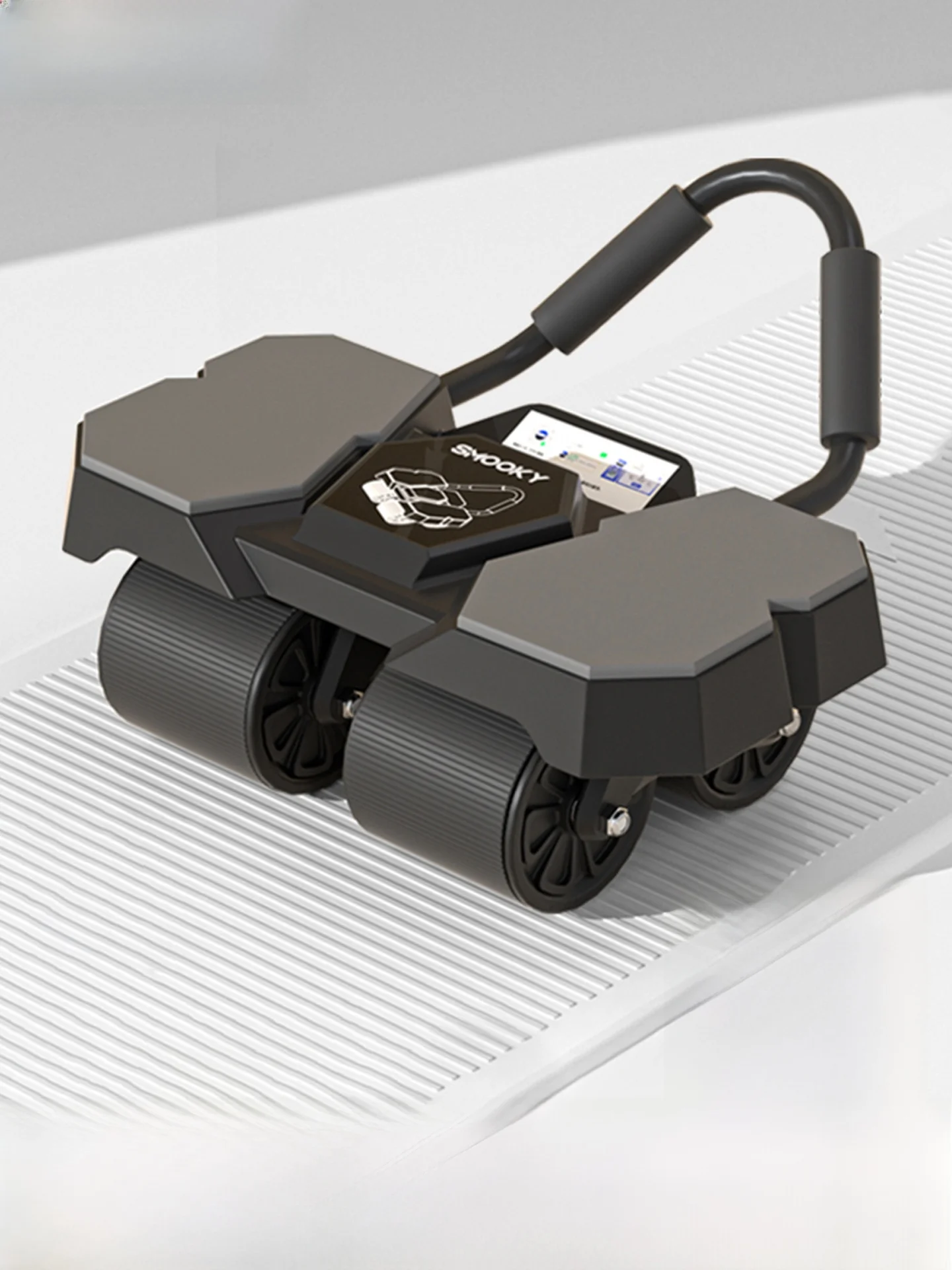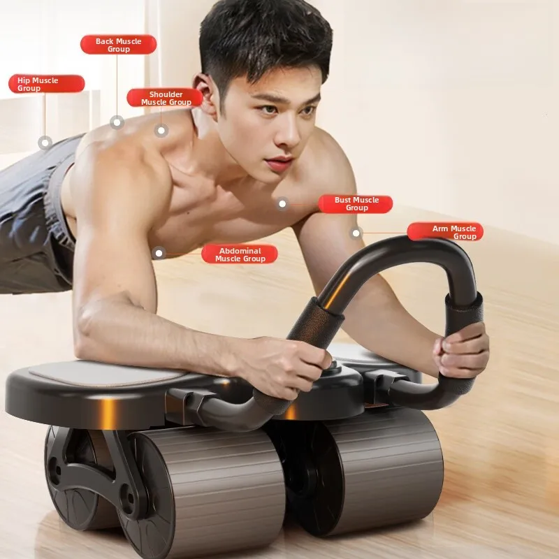 Automatyczne kółko do ćwiczeń mięśni brzucha z funkcją odbicia, sprzęt fitness do treningu mięśni brzucha, konstrukcja z czterema kołami, sprzęt sportowy i fitness.