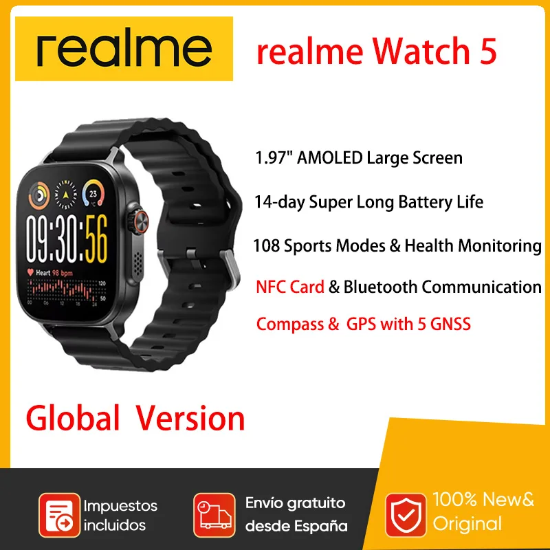 realme Watch 5 GPS NFC Smartwatch 1.97-calowy ekran AMOLED 14 dni pracy na baterii Bluetooth 5.3 Dla realme GT 8 Pro realme 14 Pro plus