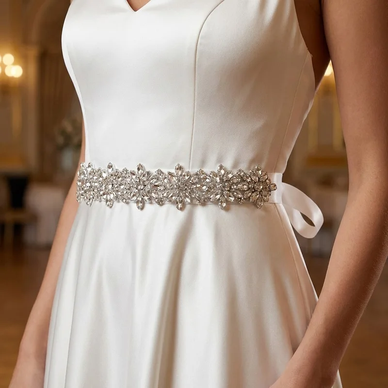 Luksusowy, ręcznie robiony, bogato zdobiony łańcuszek do sukni ślubnej z kryształkami i cyrkoniami, błyszczący kryształowy pasek do sukni ślubnej, elegancki naszyjnik do talii, nowa biżuteria.