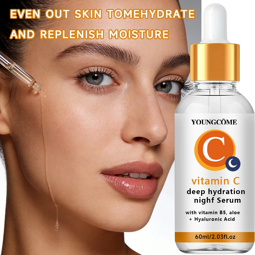 Serum z witaminą C z kwasem hialuronowym i aloesem - Głęboko nawilżające, regenerujące podczas snu, rozświetlające esencja do twarzy dla promiennego wystróju skóry 40/60