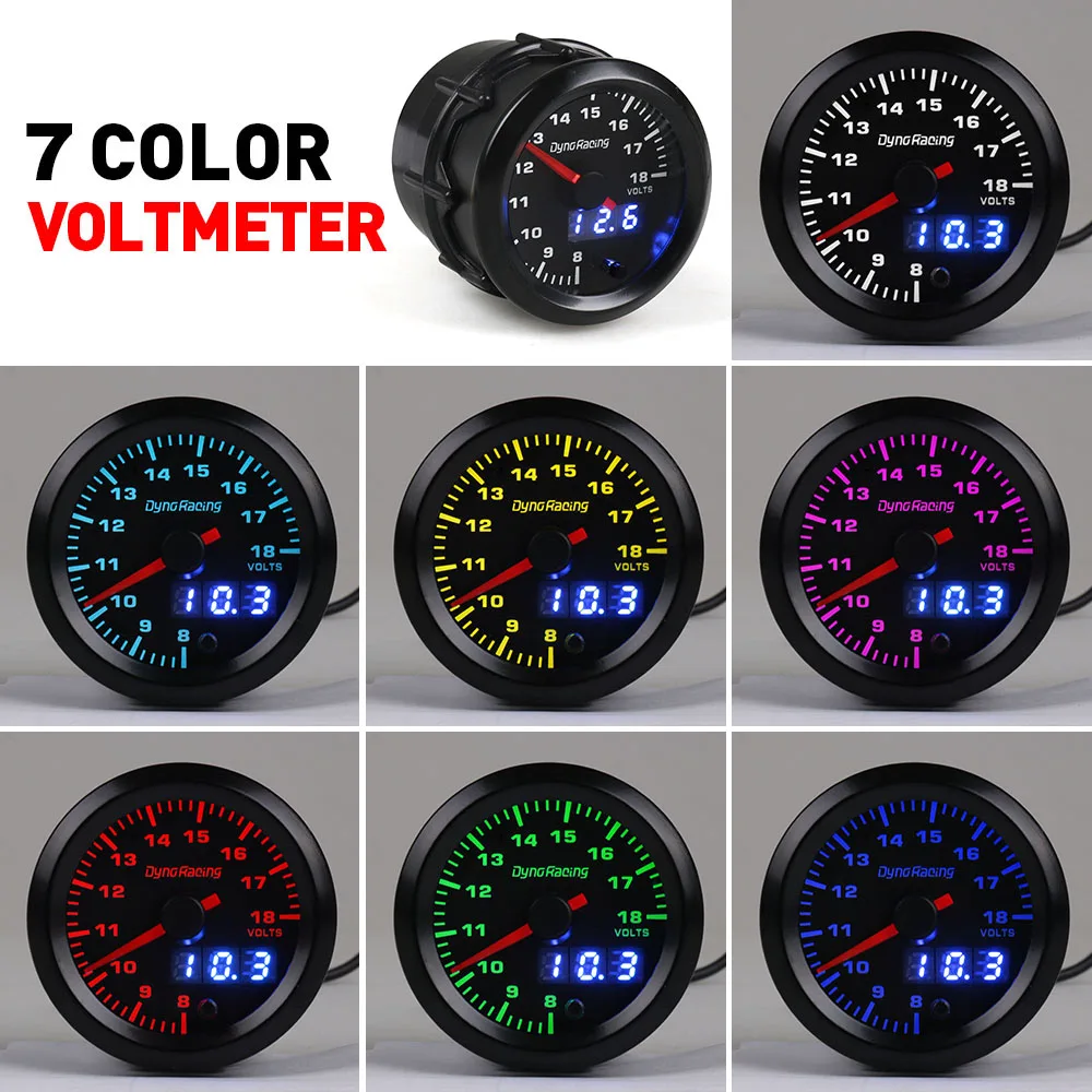 Wskaźnik samochodowy 2 "52 MM woltomierz do łodzi morskiej 8-16 V 16-32 V VOLT 7 kolorowe podświetlenie IP67 wodoodporny wskaźnik woltomierza niestandardowy