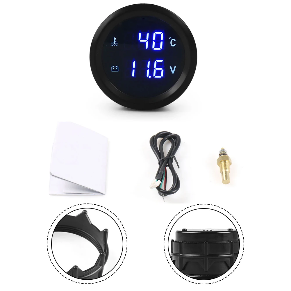 Cyfrowy podwójny wskaźnik samochodowy 52mm, temperatura wody, napięcie 12-24V, 1/8" NPT, 40-150 ° Wyświetlacz C 8-30V z wyraźnym wyświetlaniem i monitorowaniem w czasie rzeczywistym