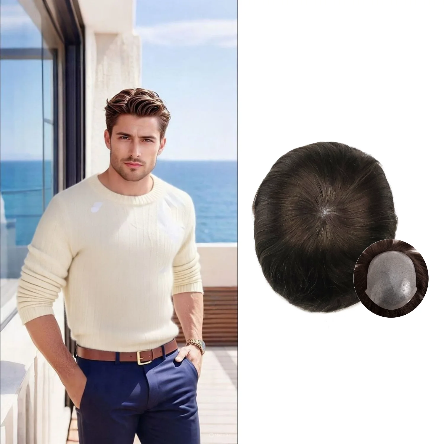 Ultracienka naturalna tupet męski z włosów naturalnych, peruka męska, proteza, systemy uzupełniania włosów, treska męska, peruki męskie