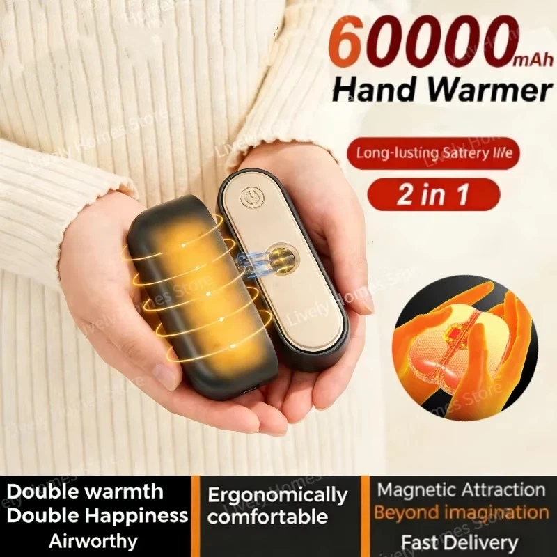 Magnetyczny ogrzewacz do rąk 2 w 1, elektryczny, przenośny, kieszonkowy, z długotrwałym i bezpiecznym nagrzewaniem, idealny na zimę, prezent na zewnątrz, model 2026