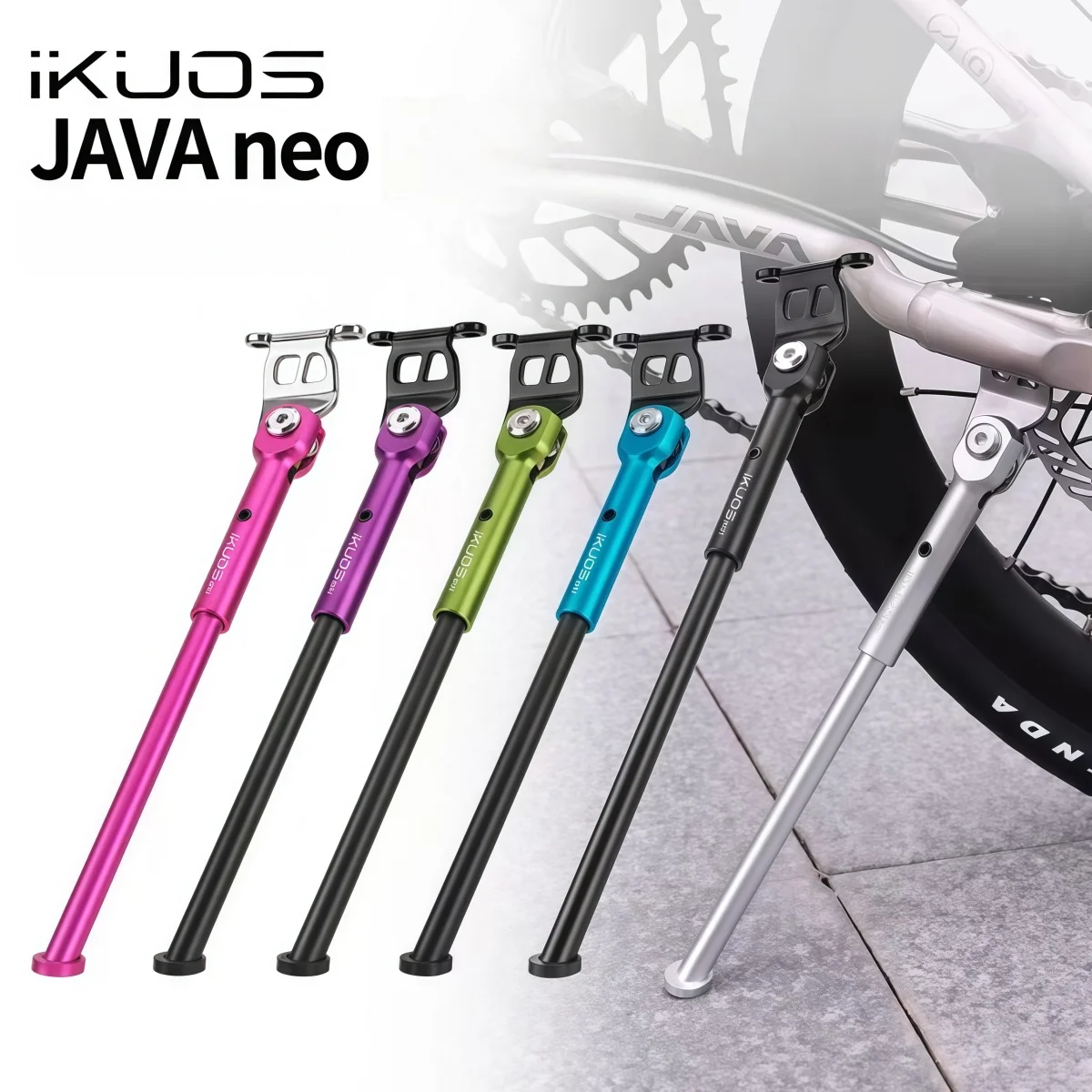 Stojak rowerowy Family Safe z regulowaną nóżką i antypoślizgową stopką zapobiegającą zarysowaniom, bezpieczne wsparcie dla rowerów dziecięcych, młodzieżowych i dla dorosłych.