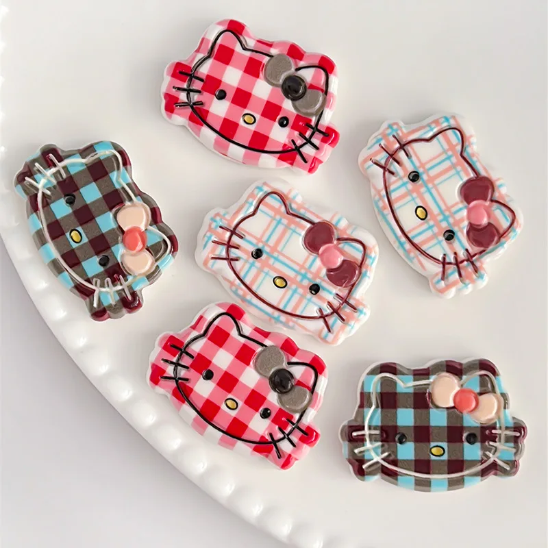 10 szt. Energetyczne żywiczne figurki animacyjne Sanrio, kolorowe kokardy, głowy kotów, płaskie ozdoby, dekoracje, rękodzieło DIY, scrapbook