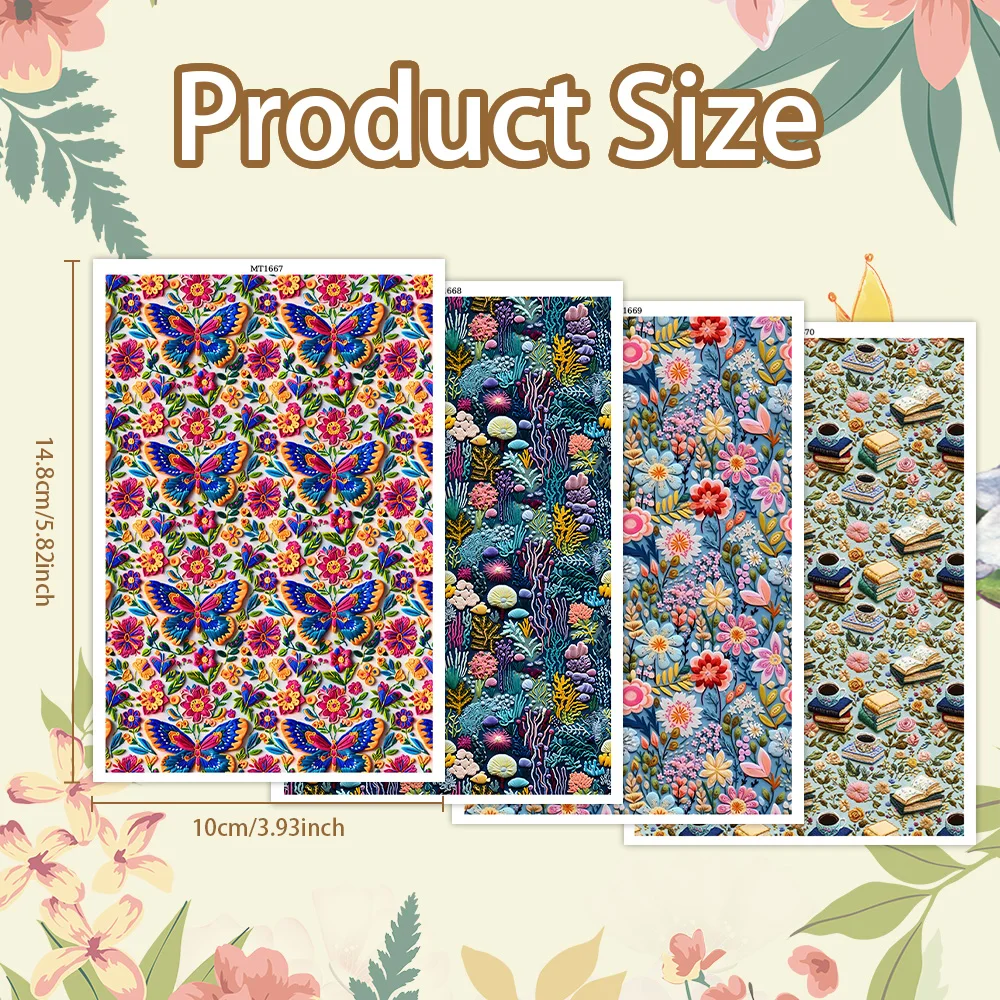 1~4 szt. Vintage Papier Transferowy z Motywem Kwiatowym i Oceaniczny - Wodoodporne, Jednorazowe Naklejki do Modeliny, Biżuterii DIY, Kolczyków