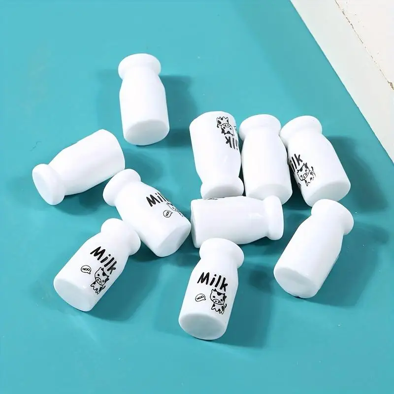 10 Mini Butelki Mleka z Żywicy - Ozdoby 3D DIY do Rękodzieła, Akcesoria do Etui na Telefon, Tworzenia Biżuterii, Breloków, Scrapbookingu - Trwałe