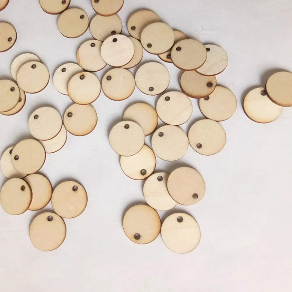 50 szt. Okrągłe drewniane plasterki 2 cm z otworem, wysokiej jakości, ekologiczne, puste elementy drewniane do rękodzieła DIY, tworzenia etykiet, decoupage, tabliczek i szyldów.