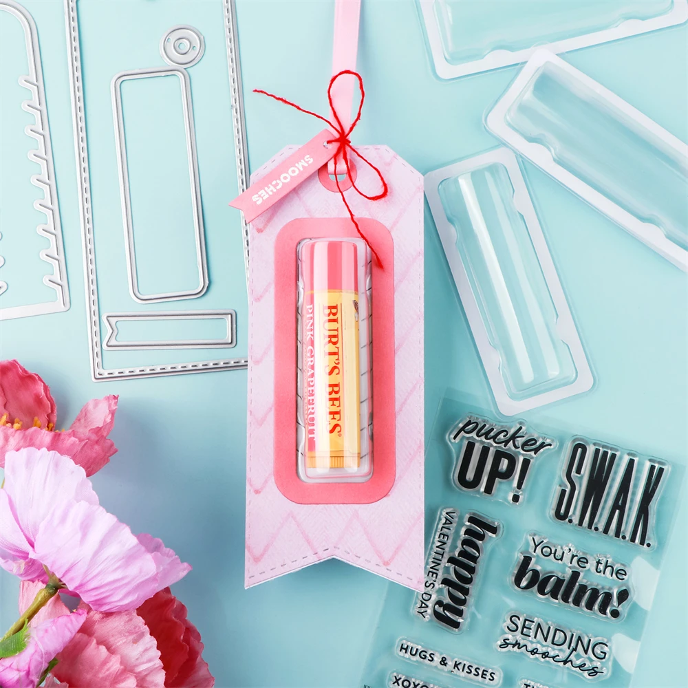 Plastikowe przezroczyste prostokątne kopuły, samoprzylepne woreczki na balsam do ust uchwyt na pieniądze/cukierki metalowe wykrojniki do rękodzieła DIY karty podarunkowe