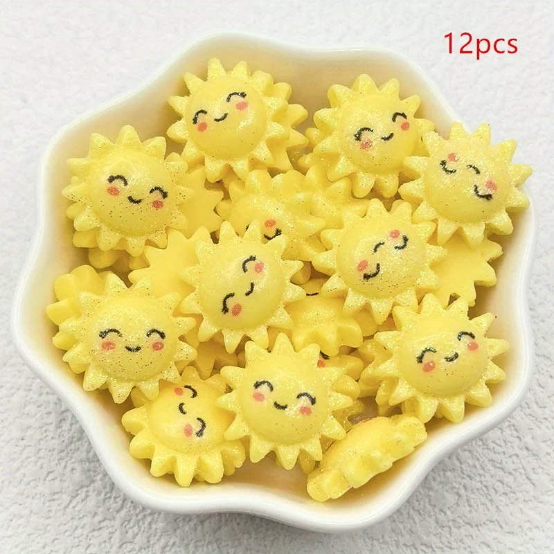 [12 szt. Zawieszek Słonecznikowych w Różnych Kolorach] 12 szt. Zawieszek z żywicy w kształcie słonecznika, płaskie dekoracje do rękodzieła DIY, tworzenia biżuterii.