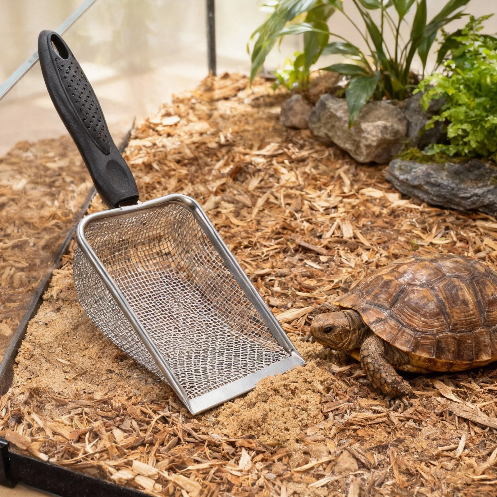 Profesjonalna łopatka do piasku dla gadów, ze stali nierdzewnej, trwała, łatwa w czyszczeniu, narzędzie do pielęgnacji gadów i siatki filtracyjnej do piasku.