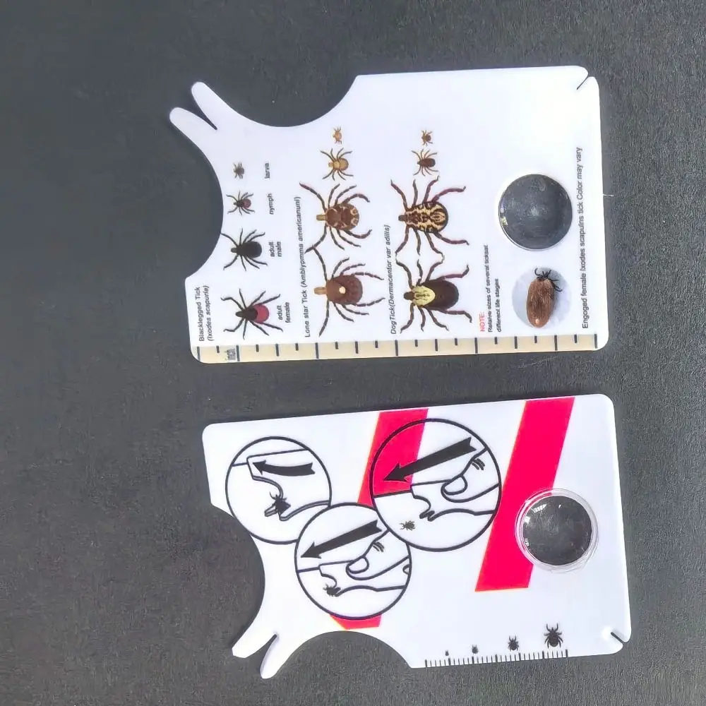 Przenośna, skuteczna karta do usuwania kleszczy, szkło powiększające, kieszonkowy łapacz wągry, trwałe plastikowe narzędzie do czyszczenia psów i kotów, narzędzie dla zwierząt.