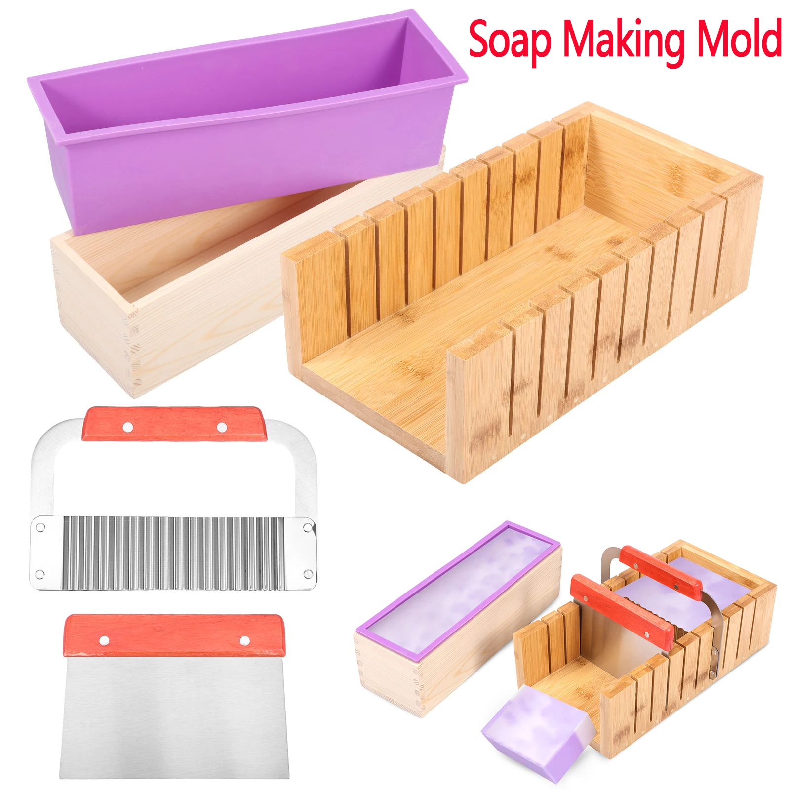 Forma do robienia mydła ręcznie robionego, odporna na odkształcenia, żaroodporna, drewniana skrzynka, zestaw form do mydła z naciętym uchwytem na mydło, prosty/zakrzywiony nóż do mydła.