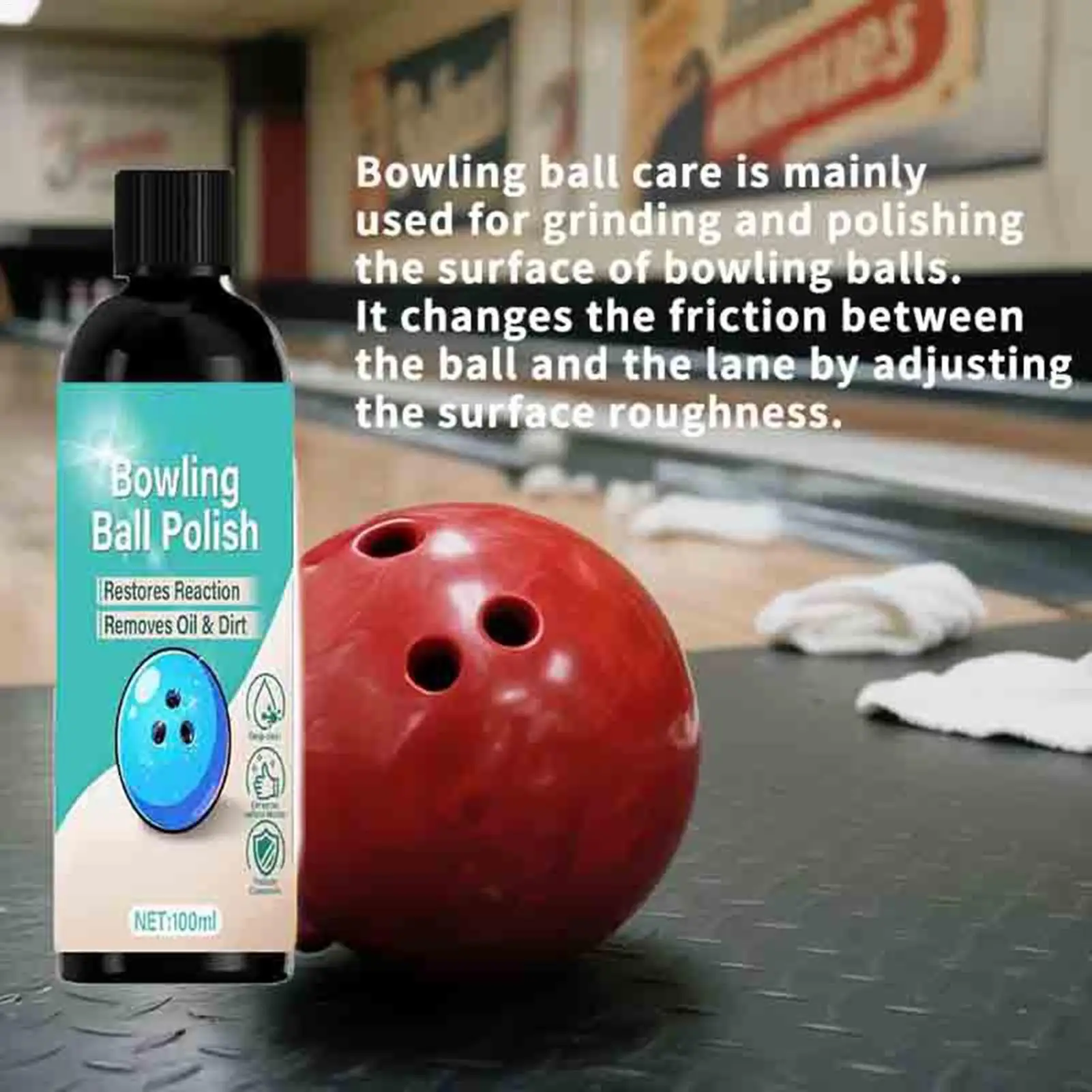 Zestaw do czyszczenia kul bowlingowych 100ml, głęboko czyszczący, delikatny środek do usuwania plam z ręcznikiem, zestaw do polerowania i czyszczenia kul bowlingowych do gier ligowych.