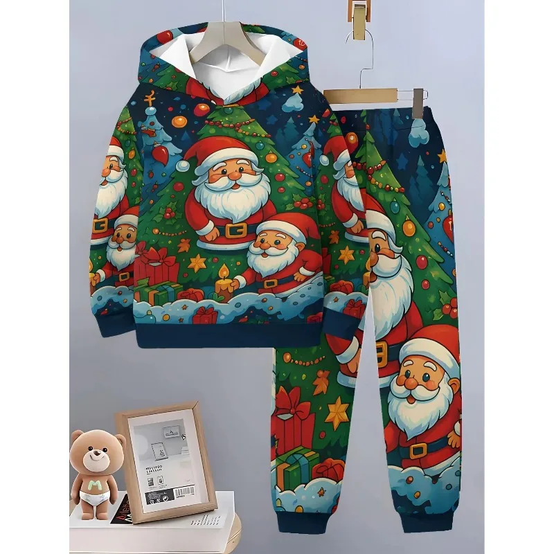 Zestaw świąteczny 3D z nadrukiem na Boże Narodzenie 2025, bluza z długim rękawem i kapturem, jesienno-zimowy, męski, dwuczęściowy dres, modny, luźny strój na festiwal/imprezę.
