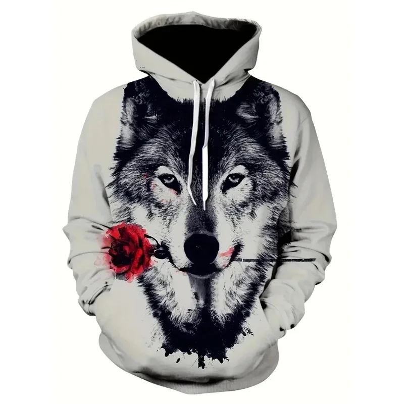 Bluza męska jesienno-zimowa z długim rękawem, z kapturem i kieszeniami, z nadrukiem zwierzęcym 3D, kreatywna bluza męska z kapturem z motywem wilka i tygrysa.