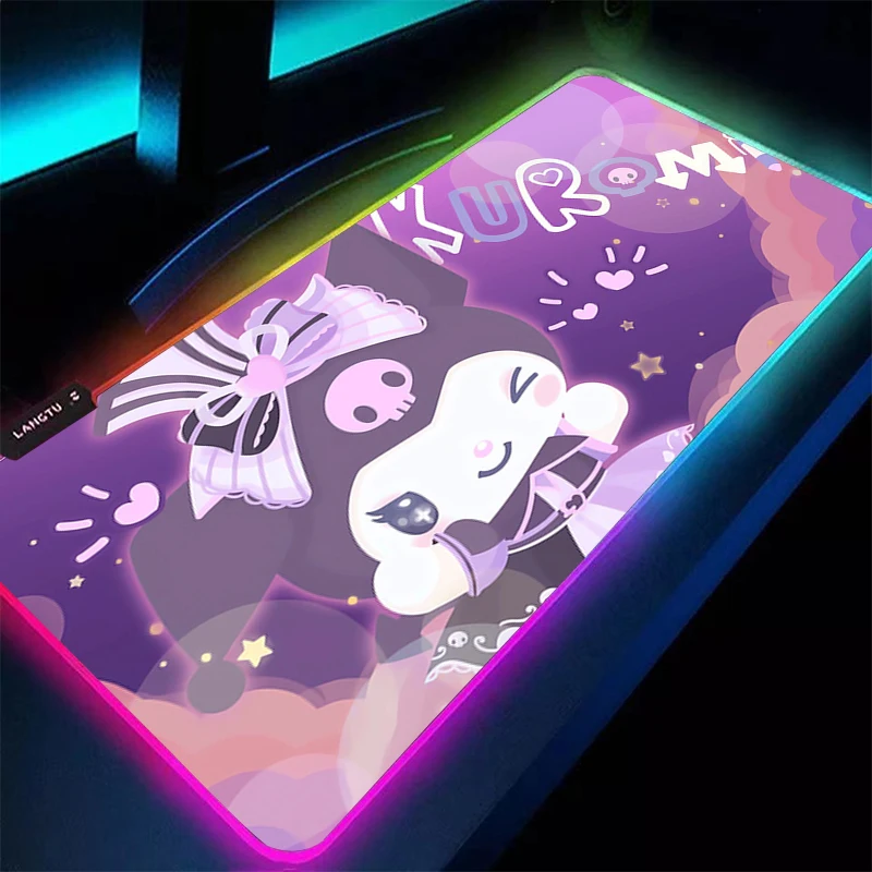 Duża podkładka pod mysz RGB Kuromi 90x40cm Anime PC Komputerowa Mata na Biurko dla Gracza Podświetlana XXL Laptop Obszyta Krawędziami LED Podkładka pod Mysz z Podświetleniem