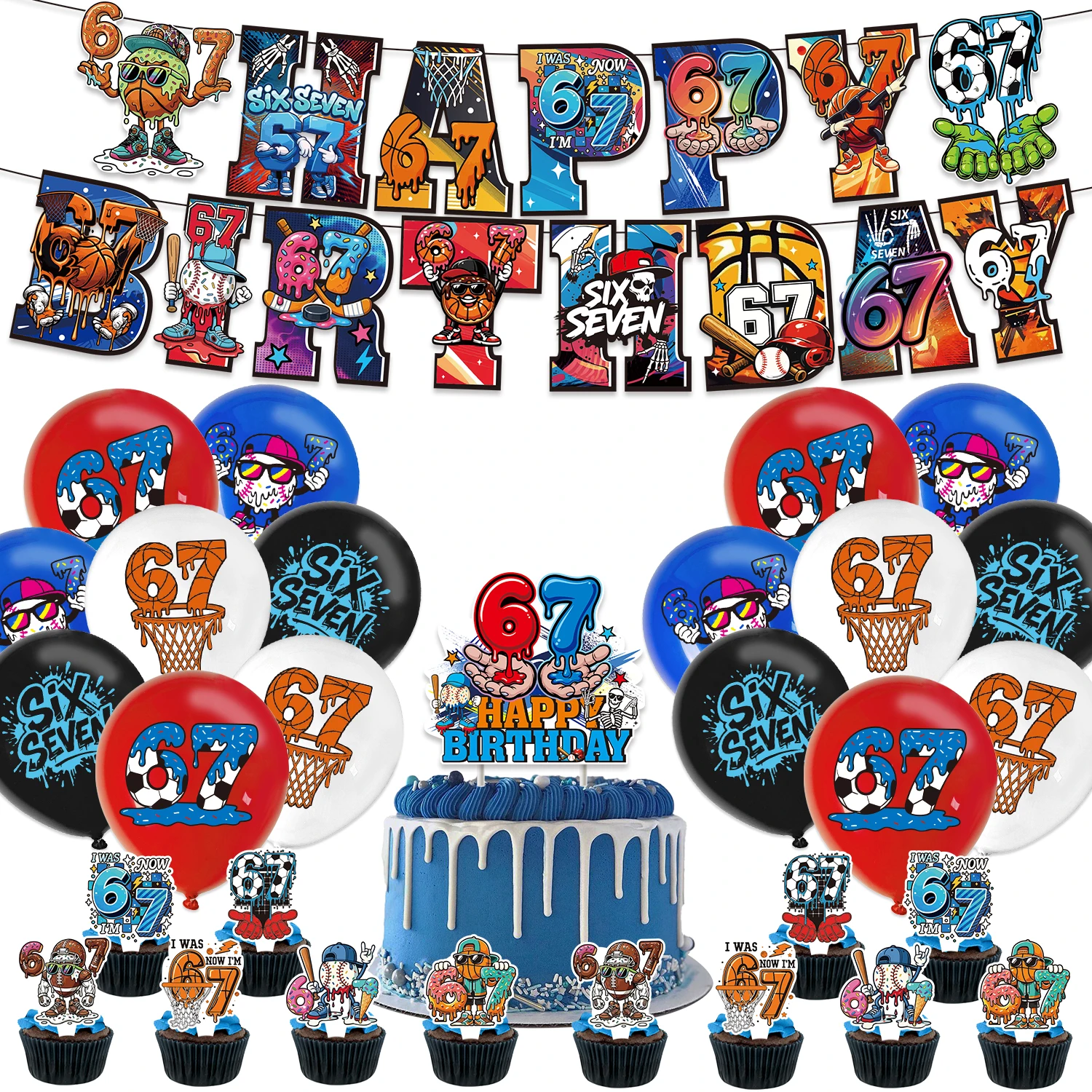 67 Dekoracje na przyjęcie urodzinowe o tematyce baseballowej i lodowej, tło fotograficzne, topper na tort, balony, baner, rekwizyt do zdjęć, prezenty dla dzieci