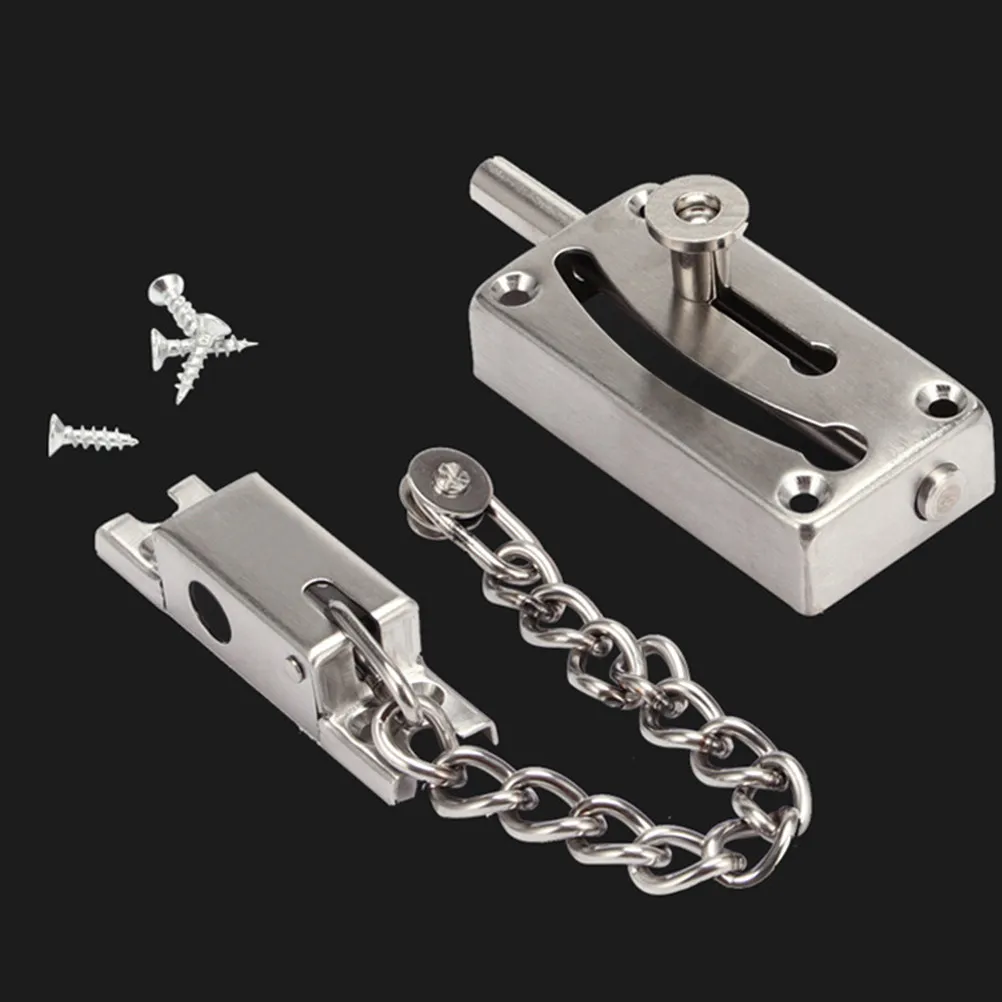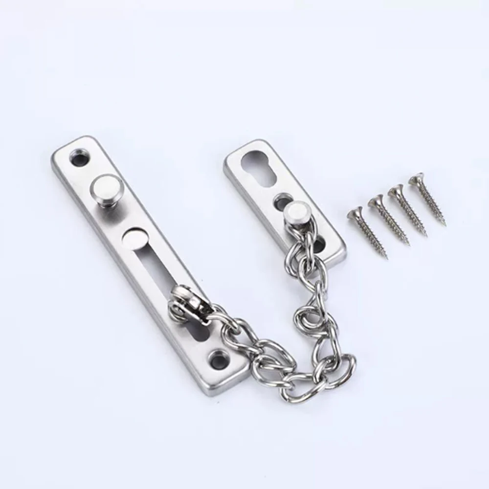Łańcuszek do drzwi ze stali nierdzewnej z zamkiem przyciskowym, pogrubiony zamek zabezpieczający do drzwi sypialni hotelowej, zatrzask łańcuszka zabezpieczającego przed kradzieżą